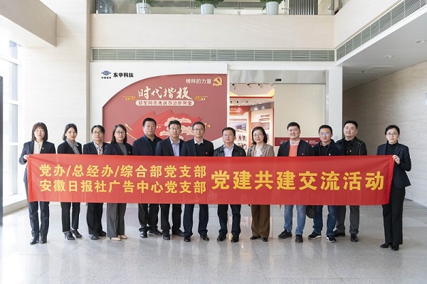 3月10日,安徽日报社广告中心党支部书记、广告中心主任、安徽传媒信息广告公司总经理王学菊一行到访东华科技,与党委办公室/总经理办公室/综合管理部党支部开展党建共建交流活动,并参观了“时代楷模”邱军同志先进事迹陈列室。公司党委副书记、纪委书记桑艳军出席活动。
