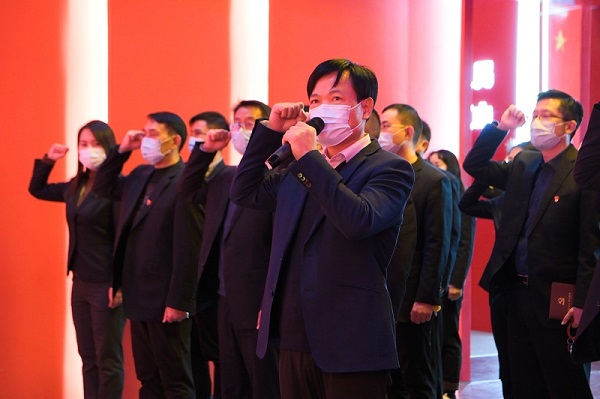 在李立新的带领下,全体党员共同重温了入党誓词,追忆入党初心使命。大家以铿锵有力的宣誓声,表达了不忘初心、牢记使命的信念,用铮铮誓言彰显了对党忠诚的决心。