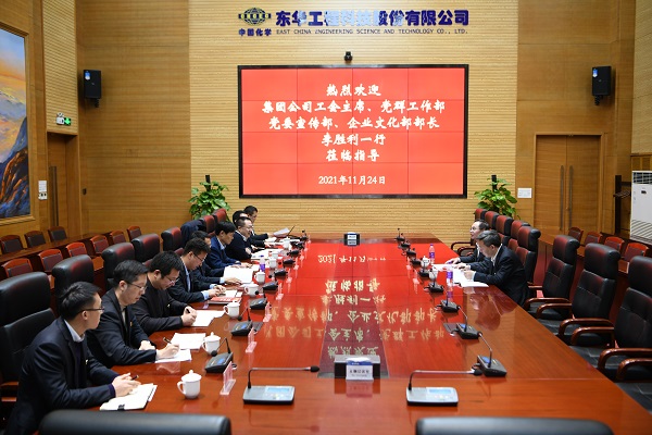 11月24日,中国化学工程集团工会主席、党委宣传部长李胜利莅临东华科技调研指导党建工作,公司党委书记、董事长李立新,党委副书记、纪委书记桑艳军,工会主席桂长田出席调研座谈会。集团公司党群工作部业务总经理王文武陪同,东华科技党务工作部门负责同志参加座谈。