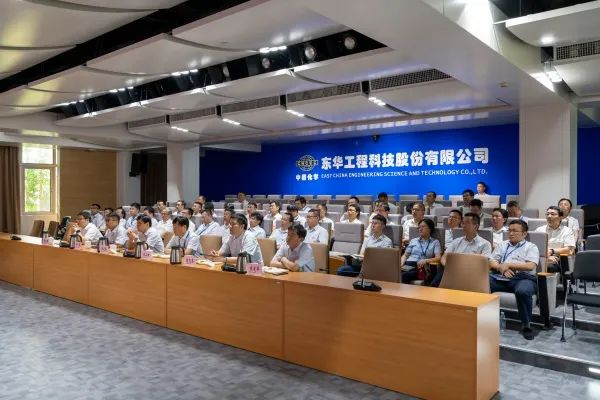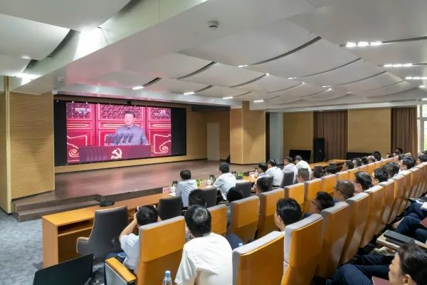 为见证这一伟大的历史性时刻,上午8时,东华科技党委书记、董事长吴光美,党委副书记、总经理李立新等领导班子成员和中层以上干部齐聚公司报告厅,共同收看庆祝活动直播。