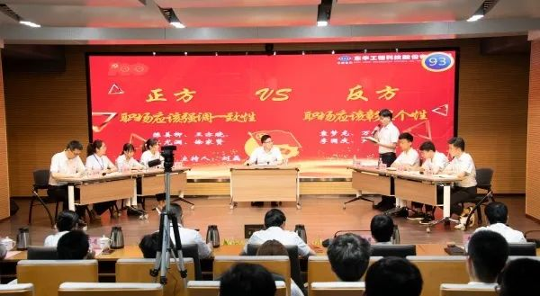 本次比赛共分为立论、攻辩、自由辩论、总结陈词四个环节,正方代表队以“职场中应该强调一致性”为辩题,反方代表队以“职场中应当彰显个性”为辩题,双方展开了激烈辩论。