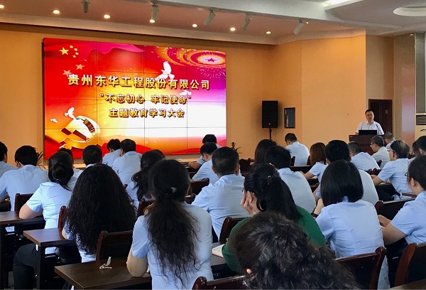 会上,贵州东华党委书记余伟胜对贵州东华开展“不忘初心、牢记使命”主题教育从贯穿全过程的四个方面进行了具体部署,并要求贵州东华党委从八月份开始,组织全体党员和非党员干部每月集中两天进行学习研讨,各支部要把学习教育融汇到两学一做和三会一课中,要真正结合贵州东华实际,学以致用,为实现贵州东华战略规划、实现“高效为国内外客户提供规范、优质的产品和服务”愿景目标出谋划策,发现问题、分析问题并解决问题。